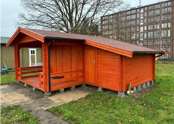 Die Grundfläche beträgt incl. des überdachten Freisitzes ca. 24 m².